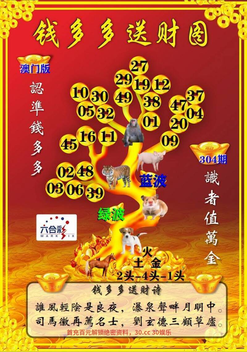 306期【单笔双笔】买码必看| 钱多多【聚宝盆彩报】444648.com |